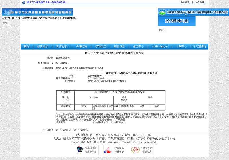 咸寧市婦女兒童活動中心暨科技館項目工程設(shè)計中標(biāo)通知