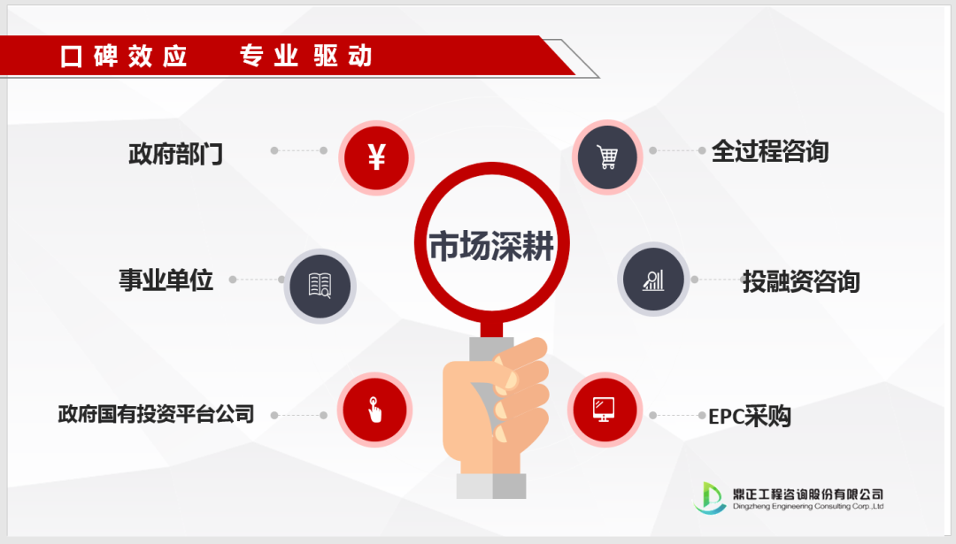 1、市場部:通過優(yōu)質(zhì)市場、優(yōu)質(zhì)專業(yè)服務(wù)帶動(dòng)工程設(shè)計(jì)、監(jiān)理業(yè)務(wù)承接,助力全過程工程咨詢服務(wù)戰(zhàn)略。
