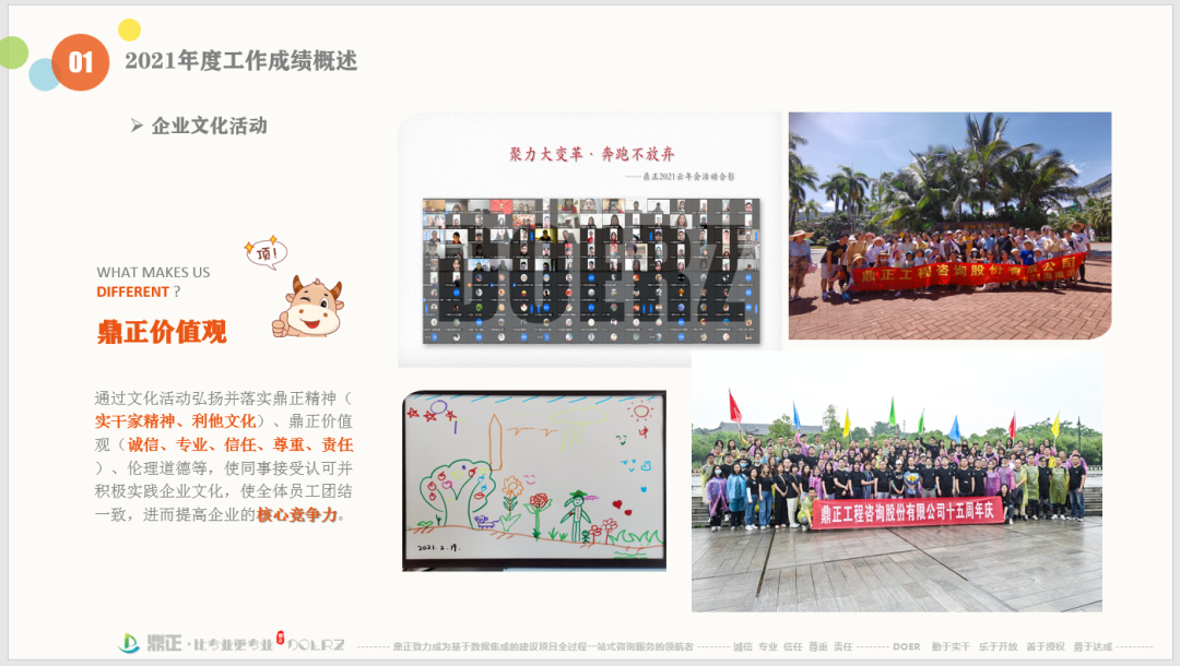 本次年終總結(jié)會議既是一次回顧過往的總結(jié)大會,也是一次展望未來、再創(chuàng)佳績的動(dòng)員大會。感謝全體鼎正人在2021年度的積極付出與努力,望大家繼續(xù)加強(qiáng)自身學(xué)習(xí),提高工作效率,端正工作態(tài)度,提升服務(wù)質(zhì)量,全體同仁齊心協(xié)力乘勢而上,凝聚力量共筑未來,相信明天會更好!
