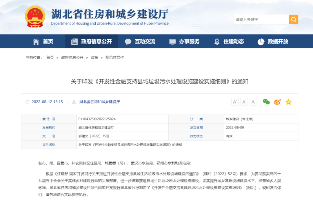 根據《住建部 國家開發(fā)銀行關于推進開發(fā)性金融支持縣域生活垃圾污水處理設施建設的通知》(建村〔2022〕52號)要求,為貫徹落實黨的十九屆五中全會關于實施鄉(xiāng)村建設行動的決策部署,進一步統(tǒng)籌推進縣域生活垃圾污水處理設施建設,切實提升城鄉(xiāng)基礎設施建設水平,改善城鄉(xiāng)人居環(huán)境,湖北省住房和城鄉(xiāng)建設廳聯(lián)合國家開發(fā)銀行湖北省分行制定了《開發(fā)性金融支持縣域垃圾污水處理設施建設實施細則》(附后),現印發(fā)給你們,請各地結合實際參照執(zhí)行。