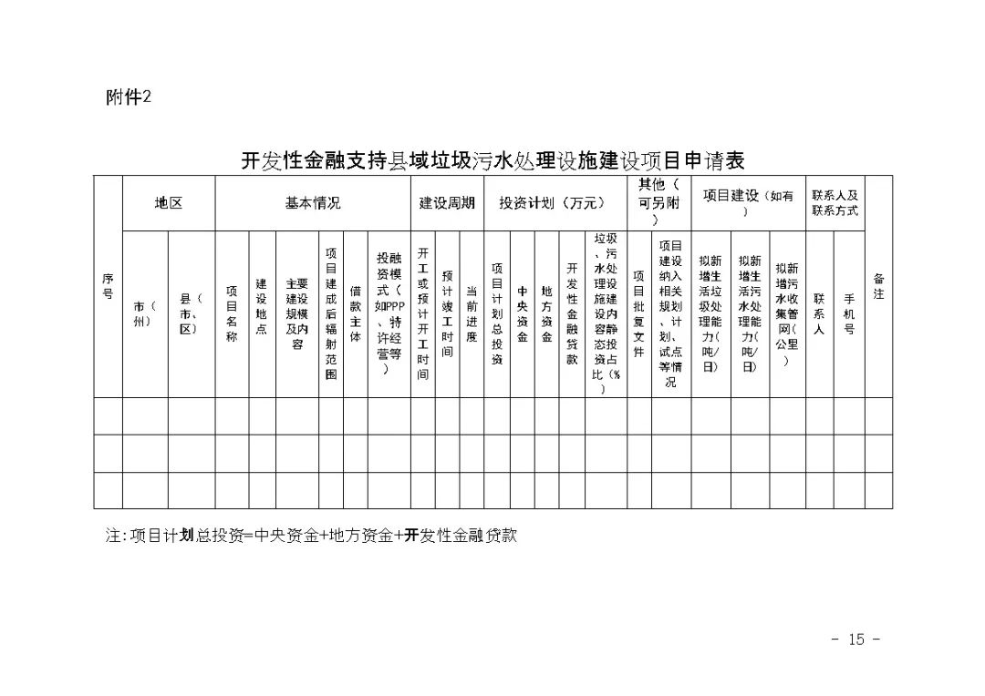 2.開發(fā)性金融支持縣域垃圾污水處理設施建設項目申請表