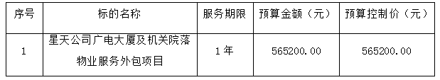 1、采購項目名稱:星天公司廣電大廈及機關院落物業服務外包項目