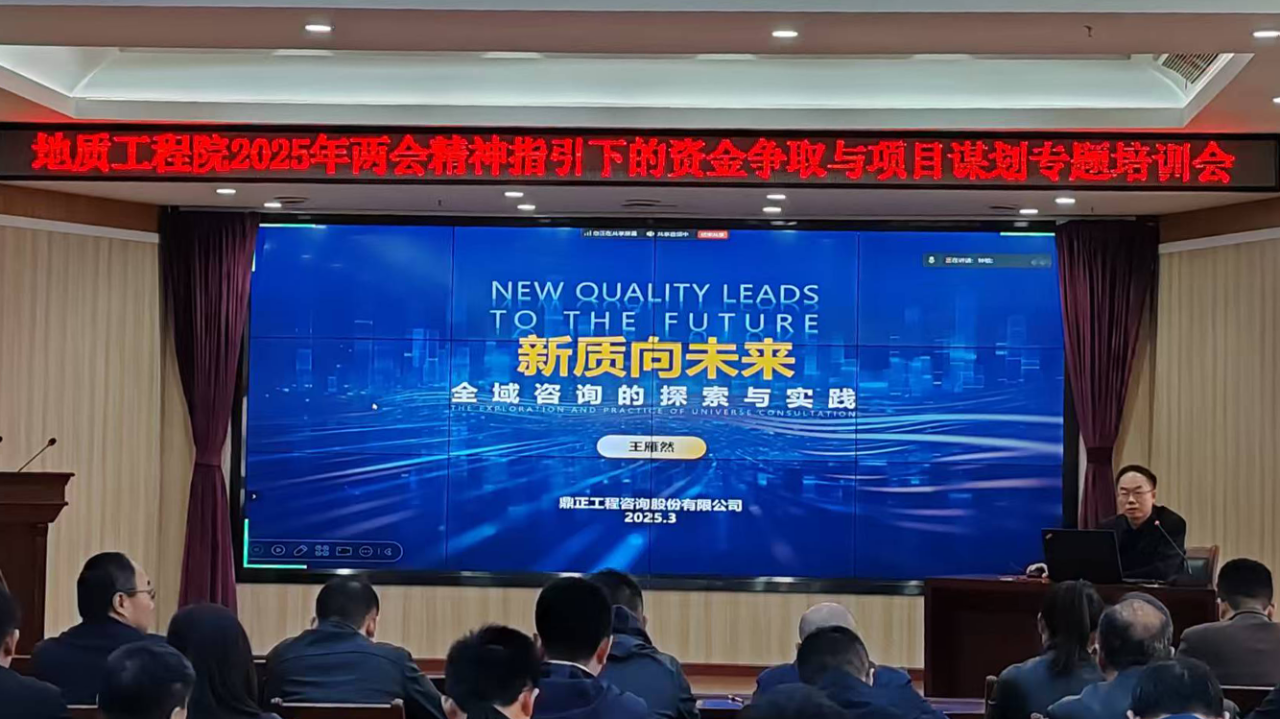 4月2日上午,湖北省城市地質(zhì)工程院組織召開“2025年兩會(huì)精神指引下的資金爭取與項(xiàng)目謀劃專題培訓(xùn)會(huì)議”,鼎正董事長王雁然、副總經(jīng)理彭亮受邀擔(dān)任主講嘉賓,并作專題培訓(xùn)交流。