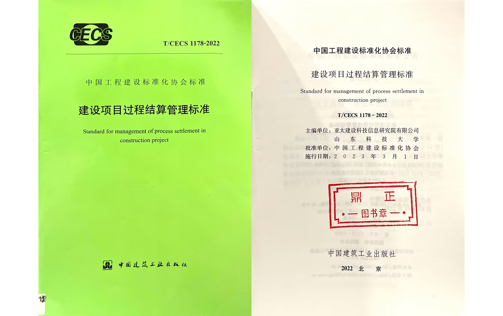 ▲《建設(shè)項目過程結(jié)算管理標(biāo)準(zhǔn)》封面及扉頁
