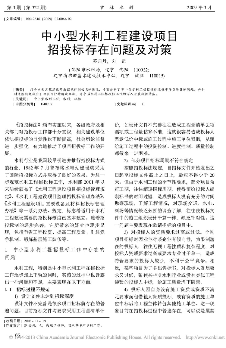 中小型水利工程建設項目招投標存在問題及對策
