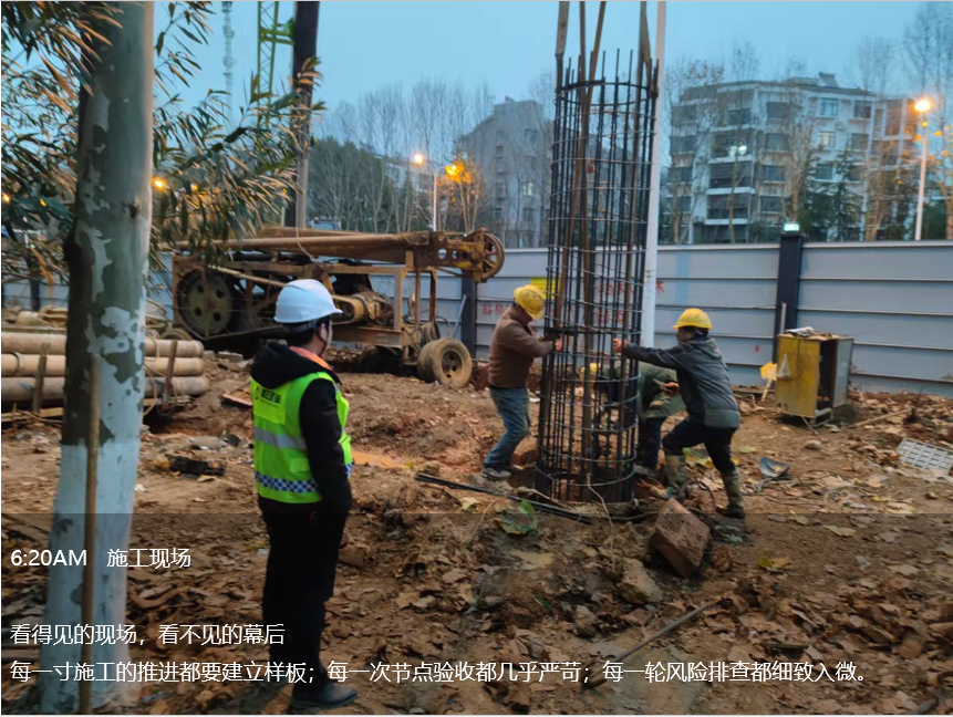 凌晨五點(diǎn)的工地,屬于項(xiàng)目管理部的十二時(shí)辰正式拉開帷幕,旁站、巡視、平行檢驗(yàn)。