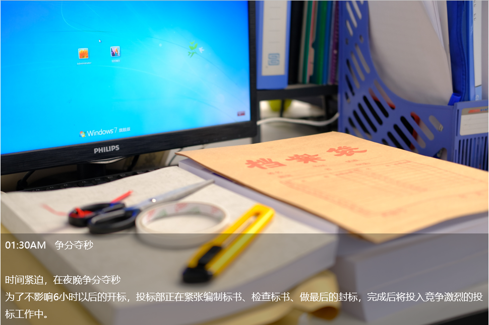 凌晨1點(diǎn),投標(biāo)部毓兒還在趕標(biāo)書,這是她這個(gè)月第五份標(biāo)書,已經(jīng)連續(xù)熬了四個(gè)晚上。她說:“對(duì)于投標(biāo)人說,有一大半的標(biāo)書,都是在半夜里完成的。尤其是臨近開標(biāo)的前兩天,基本都會(huì)加班到很晚。”