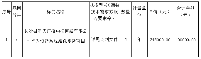 1、項(xiàng)目名稱:長(zhǎng)沙縣星天廣播電視網(wǎng)絡(luò)有限公司華為設(shè)備系統(tǒng)維保服務(wù)項(xiàng)目