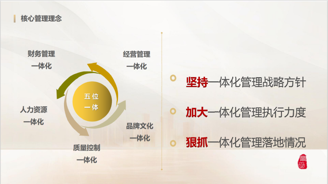 城市公司發(fā)展部經(jīng)理文家佳分別從品牌文化、人力資源、質(zhì)量控制、財務(wù)管理、經(jīng)營管理五個維度詮釋了總分公司一體化核心管理理念,引導(dǎo)總分公司“共資源、共收益、同文化、同標(biāo)準(zhǔn)”,實(shí)現(xiàn)總分公司業(yè)務(wù)聯(lián)動及全流程風(fēng)險管控的目標(biāo)。