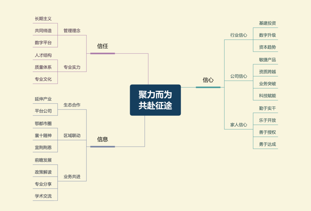 副總經(jīng)理彭亮用“信心、信息、信任”三個詞,詮釋了2023年分公司“聚力而為,共赴征途”的工作部署精神,同時為分公司走長期發(fā)展路線賦能。他指出工程咨詢行業(yè)仍然處于重要的發(fā)展機(jī)遇期,必須把握大勢、提振信心;夯實(shí)專業(yè),建立信任;互通信息、資源共享。