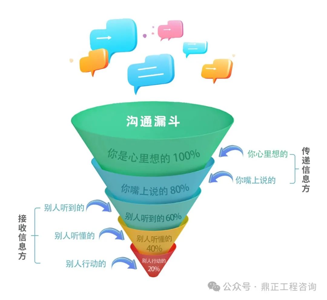 從溝通方到接收方,中間涉及很多環(huán)節(jié),也或多或少存在“溝通漏斗”的情況,比如表達不清醒、信息損耗、理解偏差、反饋有誤等。