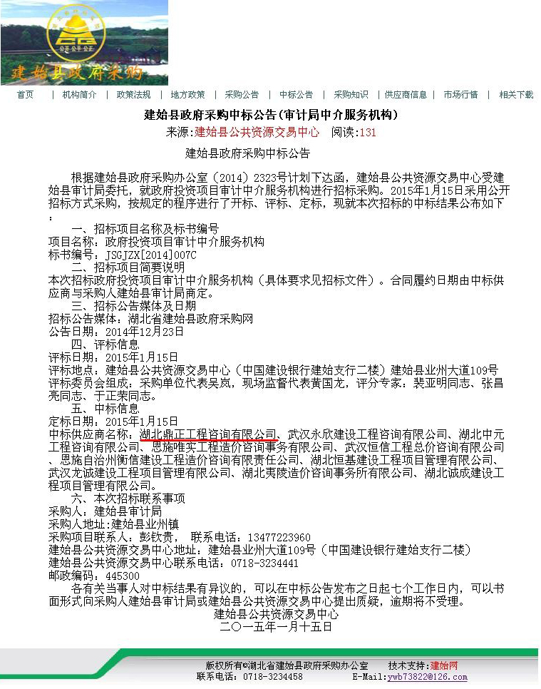 【經(jīng)營成果】我司入選建始縣政府投資項(xiàng)目審計(jì)中介服務(wù)機(jī)構(gòu)庫