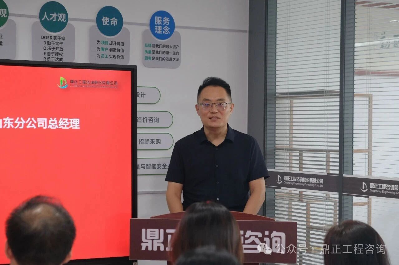 山東分公司總經理孫啟剛在致辭中提到,山東分公司的成立是鼎正咨詢持續深耕華東市場、堅定不移推進全國布局的重要舉措。作為連接長三角與京津冀的“橋頭堡”,山東分公司將堅定貫徹“誠信、專業、信任、尊重、責任”的企業價值觀,恪守以“以價值創造者為本”的企業文化內核,全面融入山東區域經濟格局。他表示,山東分公司將竭誠為每一位客戶、每一個項目貢獻專業智慧與堅實力量,以卓越業績向鼎正成立二十周年致敬獻禮。