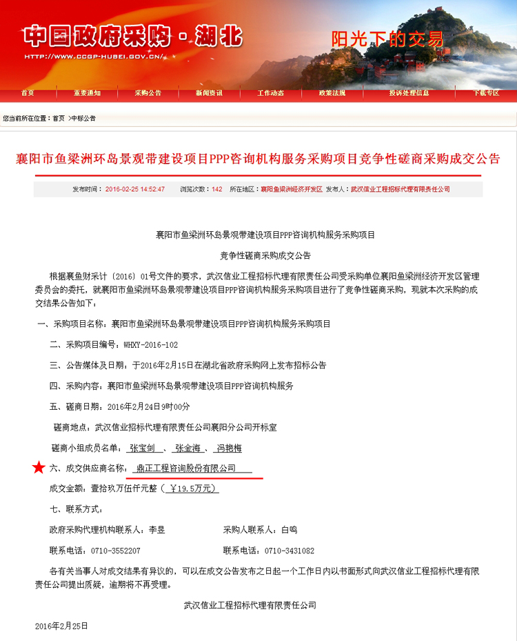 【經(jīng)營成果】我司中標(biāo)襄陽市魚梁洲環(huán)島景觀帶建設(shè)項目PPP咨詢機構(gòu)服務(wù)采購項目