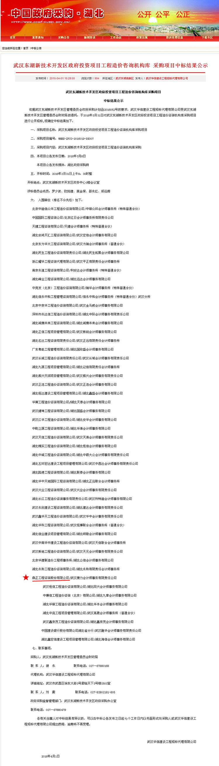 【經營成果】我司入圍武漢東湖新技術開發區政府投資項目工程造價咨詢機構庫