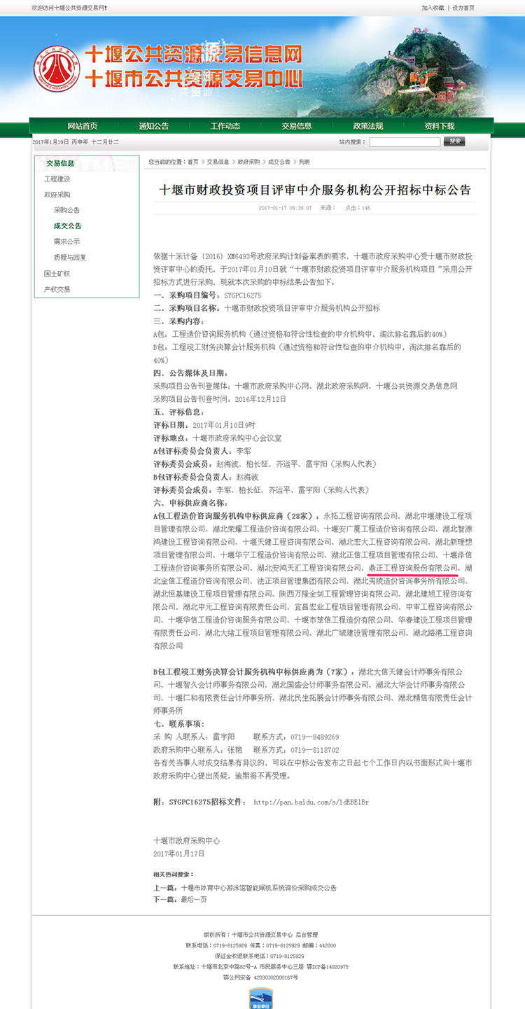 【經(jīng)營成果】我司入十堰市財(cái)政投資項(xiàng)目評審中介服務(wù)機(jī)構(gòu)庫