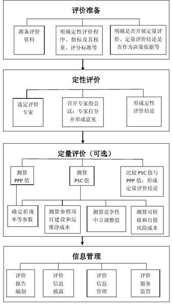 (二)評價方法。主要包括定性評價程序、指標及權(quán)重、評分標準、評分結(jié)果、專家組意見以及定量評價的PSC值、PPP值的測算依據(jù)、測算過程和結(jié)果等。