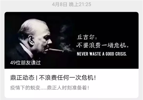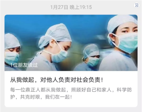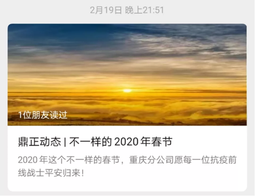 在疫情爆發(fā)之始,鼎正公司領導高度關注疫情動態(tài),辦公場所每日消毒,周密防控。在封城之時,呼吁全體同事安心在家做好防疫,不給社會增加負擔。