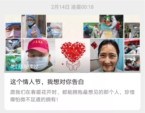 2月14日情人節(jié),我們向全國各地奮戰(zhàn)在一線從未后退的醫(yī)護工作者、各條戰(zhàn)線上的志愿者、堅守崗位的工作者們告白。希望通過這篇短文傳遞的正能量,牽動我們把更多的大愛之心傳播到社會的每一個角落。